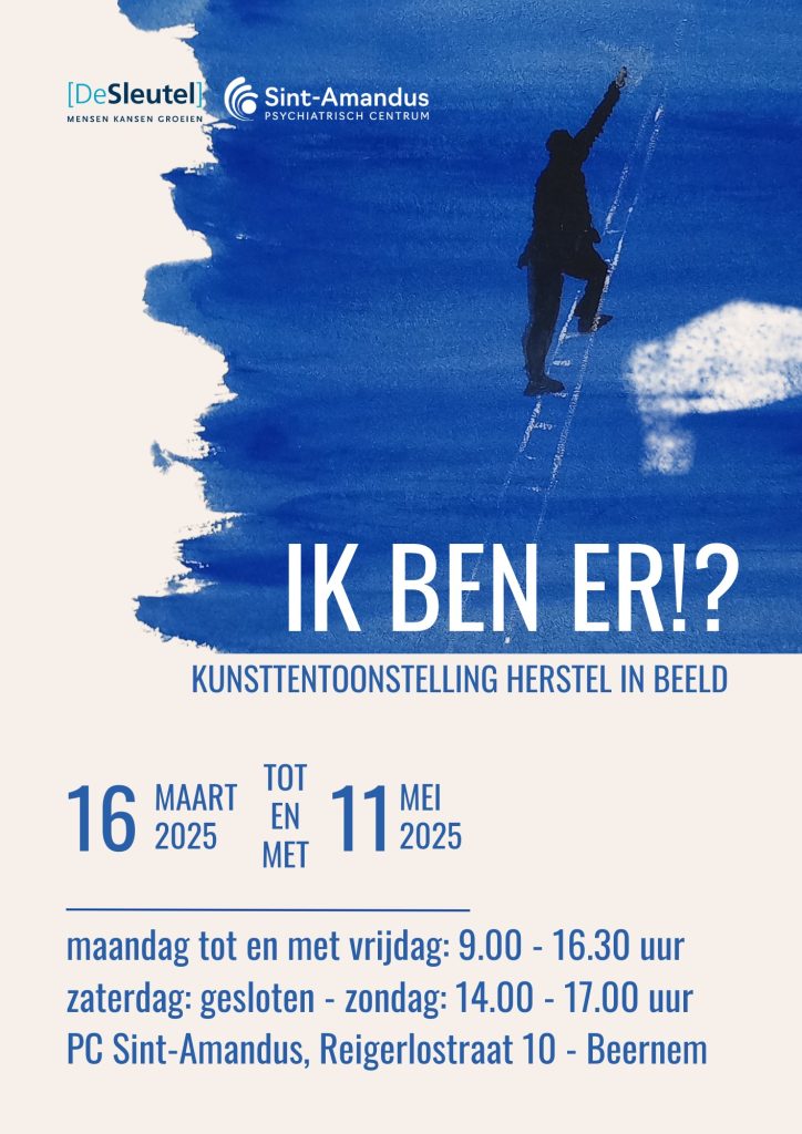Van 16 maart tot 11 mei loopt de tentoonstelling ‘Ik ben er!?’ in PC Sint-Amandus in Beernem. De kunsttentoonstelling is een initiatief van De Sleutel naar aanleiding van ons 50-jarig bestaan en was eerder al te zien in Merelbeke. De tentoongestelde werken zijn creaties van cliënten en medewerkers van De Sleutel.