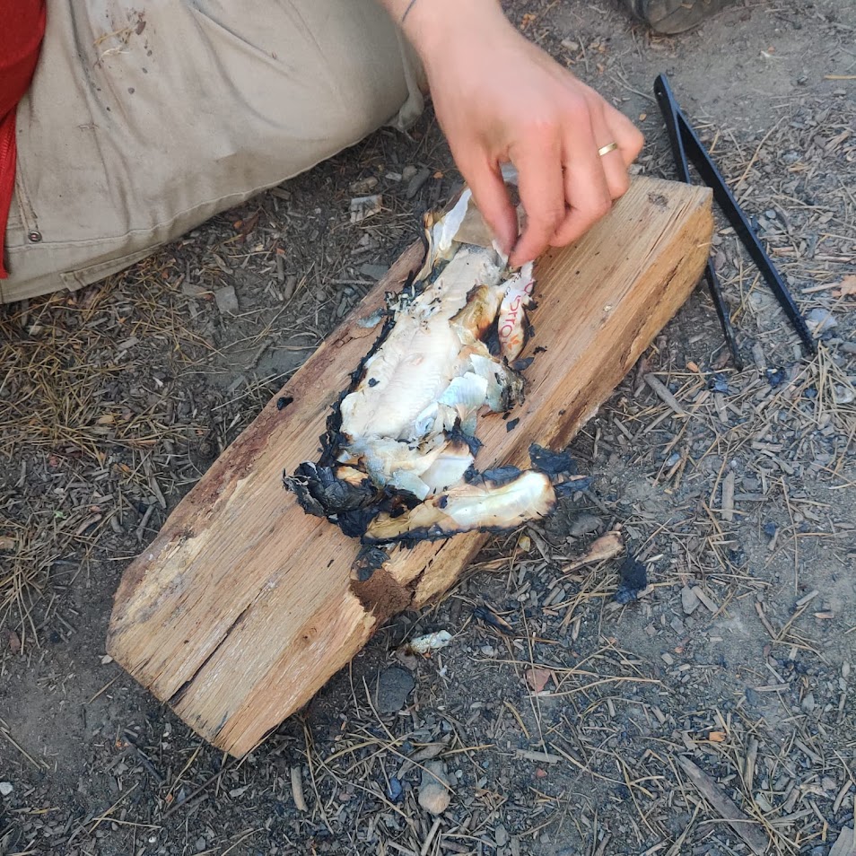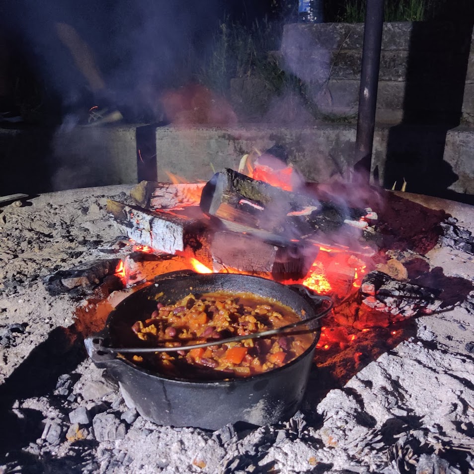 De plek was prachtig: midden in de natuur en omringd door stilte. Uitgeput maar met een grote honger kookten we samen aan de vuurschaal. Eén van de begeleiders toonde ons een geweldige truc die mij altijd zal bijblijven: vis garen in een broodzak – hoe machtig is dat.